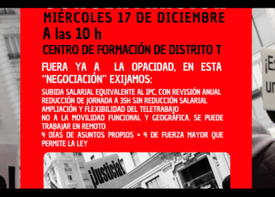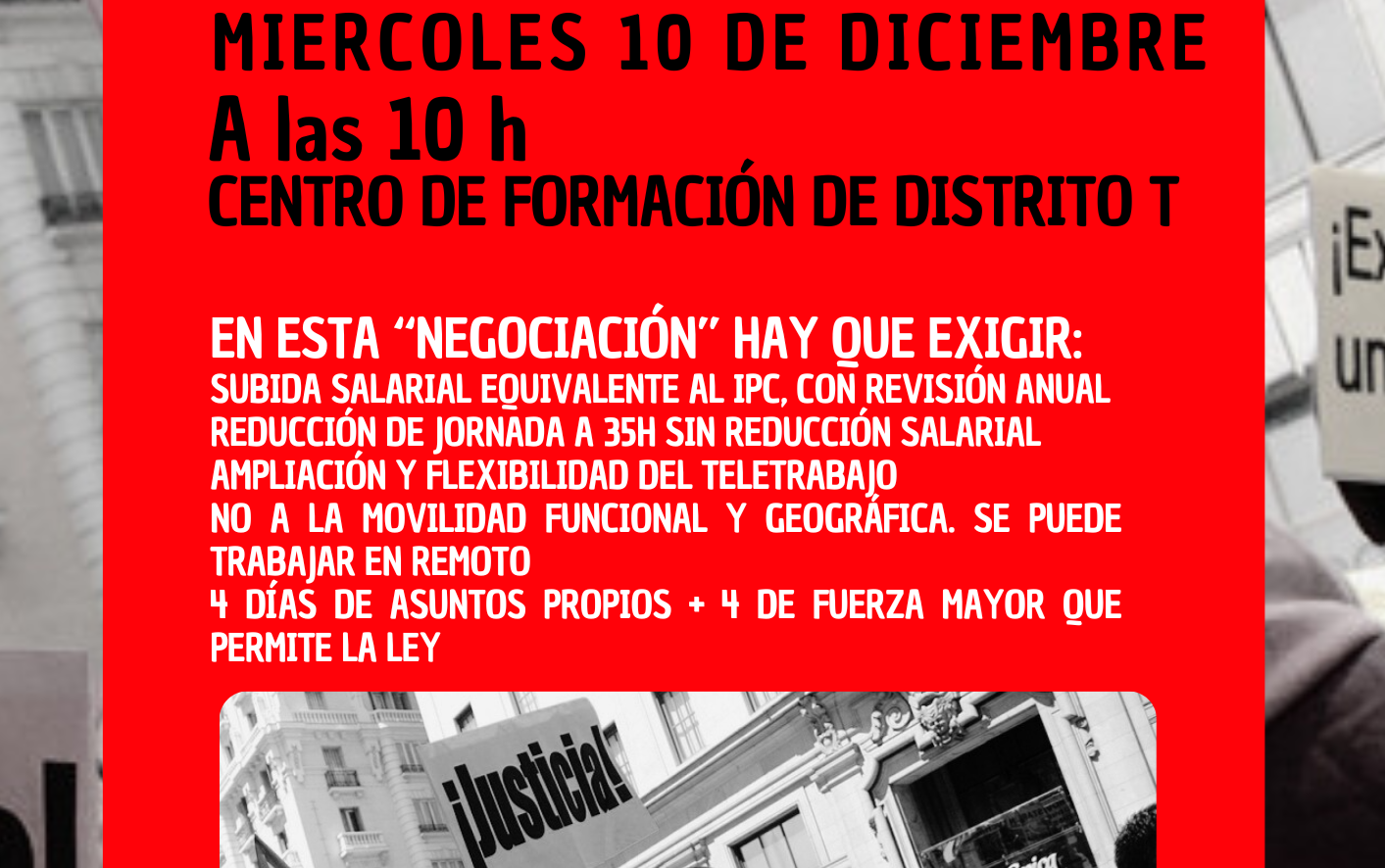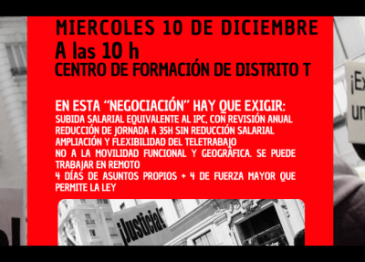 Convocatoria de concentración durante el tiempo de descanso delante del Centro de Formación de Distrito T, donde tendrá lugar la reunión, entre las 10:00 y las 11:00.